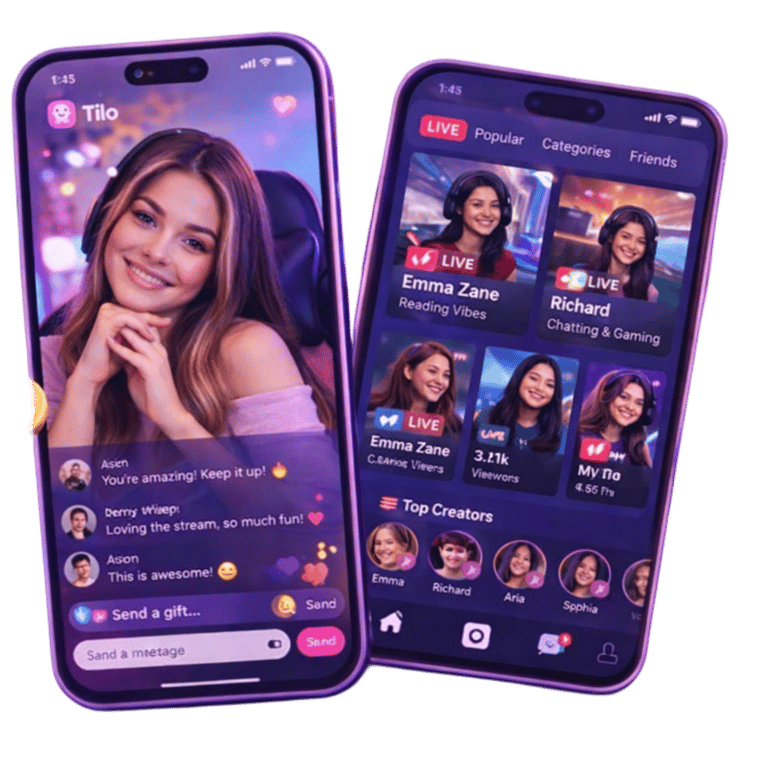 Tilo Live App is a live streaming and social interaction platform built for creators, agencies, and streamers to grow and earn together. The app combines live streaming, video chat, text messaging, and virtual gifting into one smooth and engaging experience.